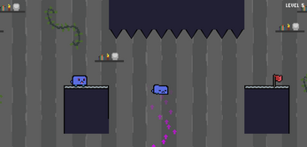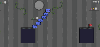 THANK YOU FOR PLAYING! I WISH I COULD HAVE ADDED MORE CONTENT, BUT I WAS AWAY AND DIDN'T HAVE A LOT OF TIME TO WORK ON THIS PROJECT. IF I WERE TO REVISIT THIS IN THE FUTURE, I WOULD LIKE TO ADD MORE LEVELS AND OBSTACLES, A CLEARER STORY-LINE THROUGH THE GAMEPLAY, MORE QOL FEATURES LIKE A LEVEL SELECT, AND SOUND EFFECTS. THANKS AGAIN AND HOPE YOU ENJOYED!